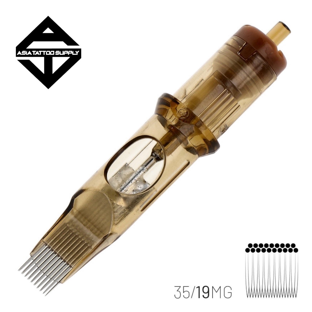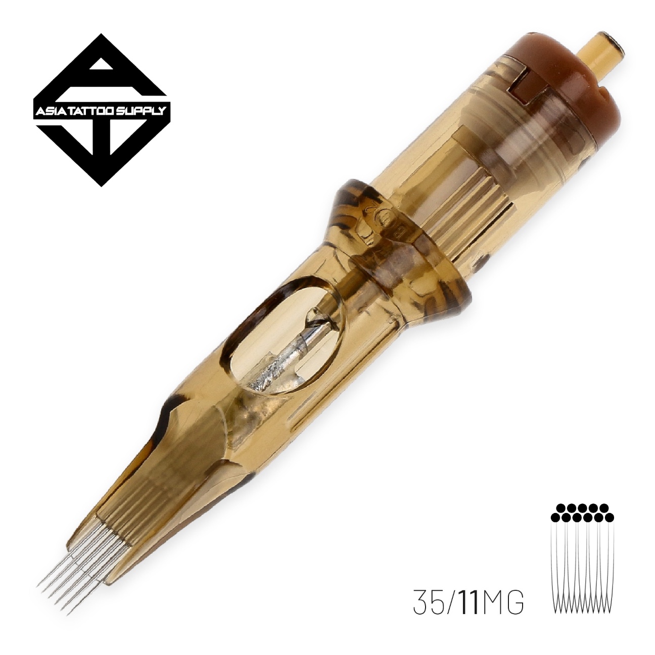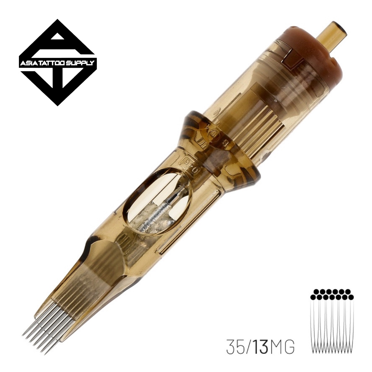 The highest quality Kwadron 0.35 mm (#12) MG or Magnum cartridge. Magnum cartridges are dedicated to shading and filling, ideal for large, wide areas. They perfectly pierce colour underthe skin and traumatise it less. The needles in this type of cartridge are arranged in a double, offset row. Always use the largest magnum that is suitable for the design to make tattooingeasier and to achieve consistent colour transitions.