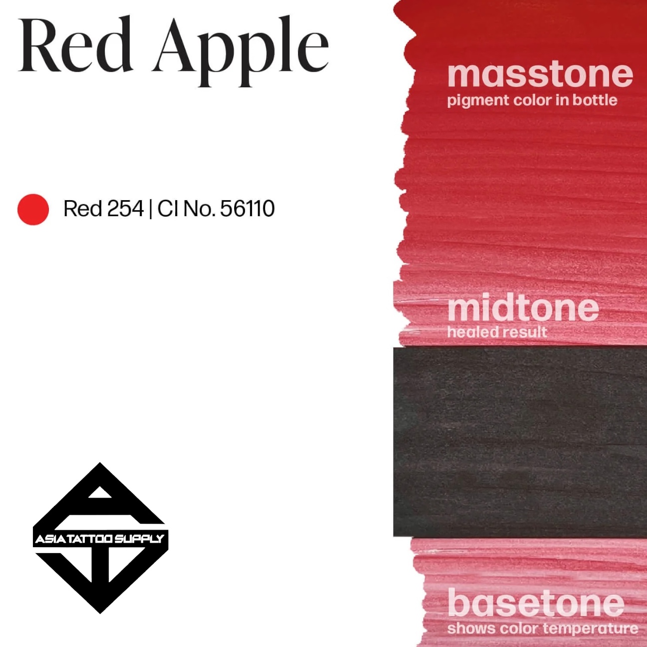 A stunning sheer medium-red with a light undercurrent of a splash of pink-red. Considering the sheer Properties of Red Apple, the client’s natural lip color will contribute to the final healed color.